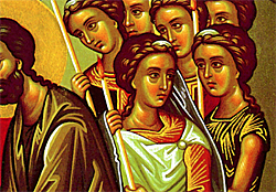 3. Young maidens gathered by Joachim to form an escort for the Theotokos (detail).