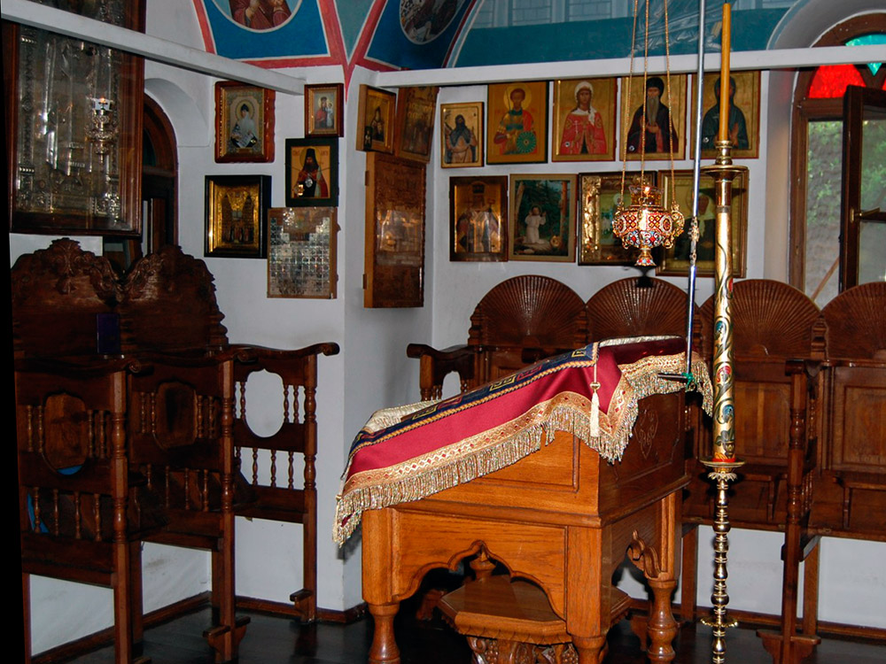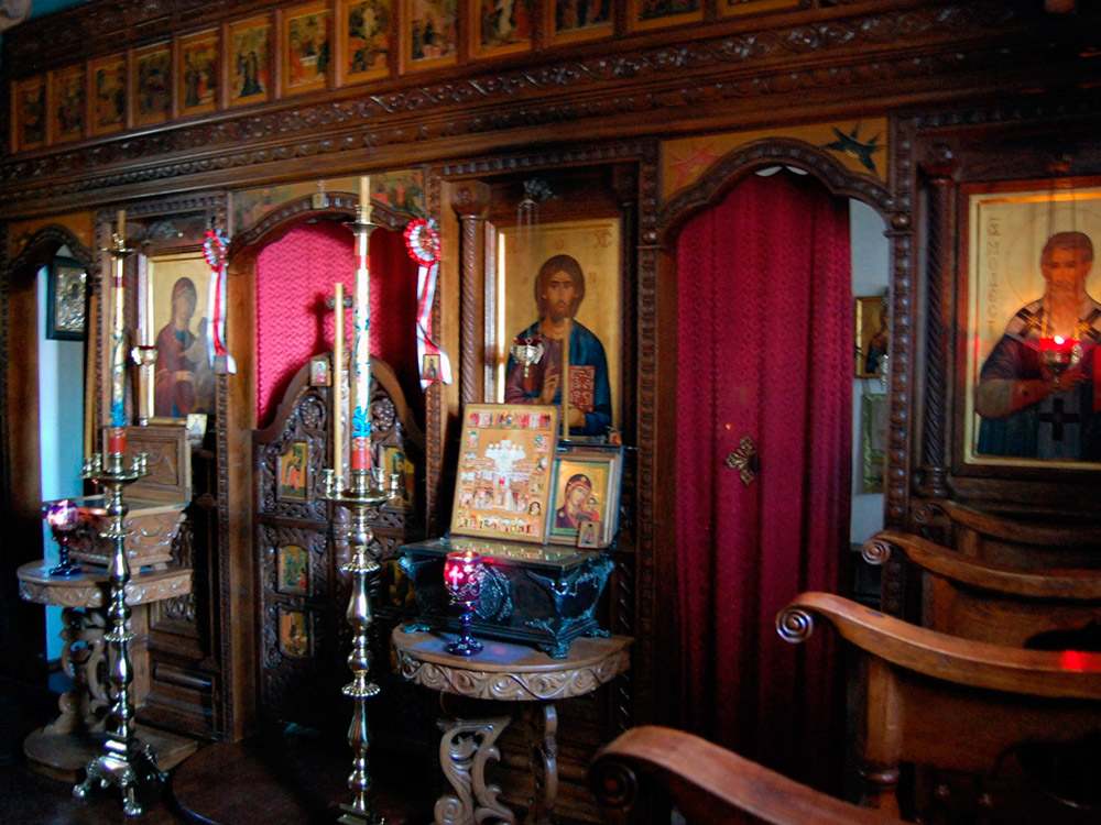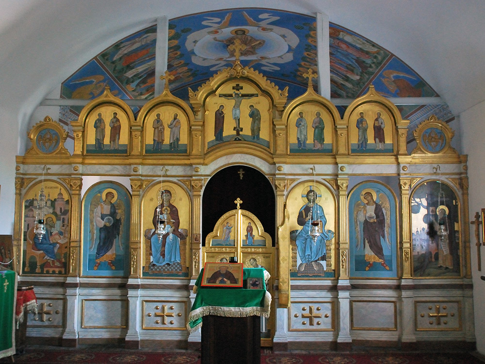 Спешу на службу, кланяюсь памятнику 26 мученикам, принявшим смерть от мучителей-католиков, и вот я в храме, в котором три иконы чудотворных, иконы великомученика Георгия и знаменитая фреска, изображающая ладью со спасающимися православными и гибнущими еретиками и отступниками. И множество мощей святых, которые всегда стоят под стеклом на солее. Когда-то мне разрешили к ним приложиться по специальной просьбе.