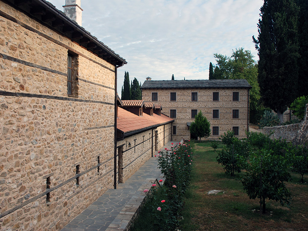 – Мы пришли в эту келлию по благословению монастыря Симонопетр в 1998 году. Тут раньше была келлия Карава Сарас, что означает «караван-сарай». В древности на этом месте была первая остановка на тропе, ведущей от Дафни. Нынешней дороги тогда не было, по тропинке шли мулы, здесь монахи останавливались и ночевали. Когда мы приехали, то на этом месте практически ничего не было: остался фундамент и несколько кирпичей над ним. Страшный пожар 1991 года, когда сгорела половина Афона, уничтожил все остатки келлии. Мы пришли с монахами на голое место и с благословения монастыря начали обустраиваться. Монастырь прорезал дорогу, спасибо ему. Такое к нам хорошее отношение монастыря. Потом, конечно, основные средства мы собирали уже в России. Получили на келлию омологию, которая, как и в древности, составляется на трех людей. Если кто-то умирает, вместо него записывают другого. В омологии оговорено всё: площадь келлии, какими ресурсами на ее территории и в каком количестве могут пользоваться насельники. В келлии совершается весь круг богослужений. У нас в келлии три иеромонаха, привлекаем еще двух из других келлий. А вообще у нас постоянно где-то 15–20 насельников. Кто-то со временем уходит, кто-то поступает в келлию. Одним словом, у нас всё совершается, как в Пантелеимоновом монастыре 15–20 лет назад, когда я там был насельником.