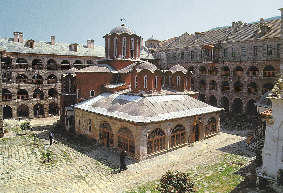 Я приехал на праздник Усекновения главы Иоанна Предтечи и поспешил на службу. Обычное афонское греческое богослужение; всенощное бдение продолжается часов шесть. Богослужение идет своим чередом, и когда внимательно следишь за службой и не теряешь нить, то, чтобы улавливать неизменяемые ее части, достаточно и моего слабого владения греческим языком.