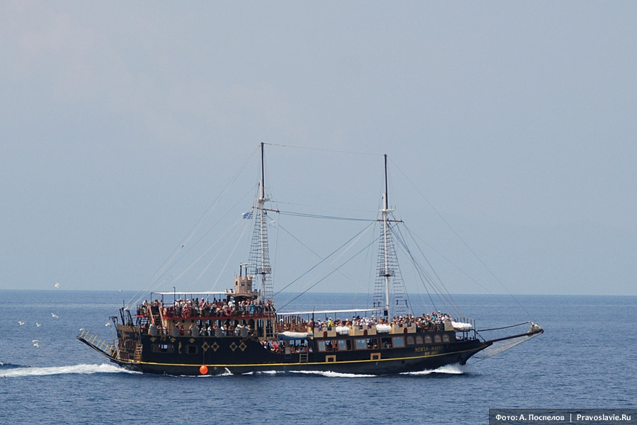Туристический корабль рядом с Афоном. Фото: А. Поспелов / Православие.Ru Туристический корабль рядом с Афоном. Фото: А. Поспелов / Православие.Ru