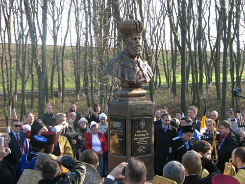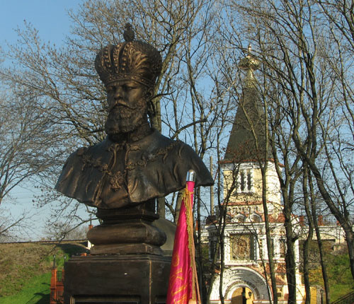 В замечательный солнечный день, сверкавший синевой небес и золотом последних листьев, мы прошли от враз опустевшей электрички по склону к низинке, в которой на краю поселка Первомайский (по-украински, Першотравневый) был размещен на гранитном постаменте памятник Государю, поначалу сокрытый белым шелком. Думалось о провиденциальности державной привязки, образовавшейся у Дома Романовых с этим конкретным местом, с Харьковщиной в целом, — в связи со страшной аварией (рассматривалась и версия с покушением) и чудесным спасением. В чем здесь послание и поручение для жителей Слобожанщины, для тутошних мест, приобщенных также к чудесному обретению святителем Иоасафом Белгородским здесь, в г. Изюме, на Песках, одной из Слобожанских святынь, иконы Богородицы «Песчанской», — «во времена нашествия иноверных нашей Свободительницы»?
