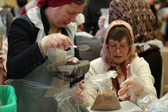 «Приобретение продуктов — в ведомости Банка продовольствия. Распределение — задача «Милосердия». Например, большую часть того, что мы сделали сегодня, раздадут тем, кто приходит в нашу группу по работе с просителями . Как правило, это малоимущие люди: например, пенсионеры с маленькой пенсией, которой еле-еле хватает на лекарства; семьи, которые приводят своих детей-инвалидов в группу дневного пребывания на территории обители; многодетные семьи. Разумеется, нуждающиеся будут получать продуктовые наборы бесплатно.