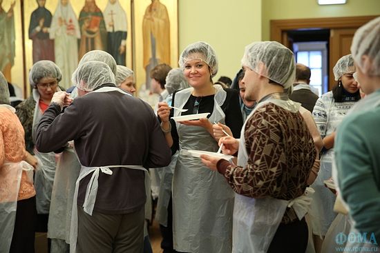 В самом начале 2014 года на территории Марфо-Мариинской Обители откроется первый цех «Народного обеда», работать он будет по такой же схеме, как на субботней показательной акции. Другие цеха откроются позже, не только в Москве, но и в регионах. Подробнее о сути проекта и планах на будущее нам рассказала пресс-секретарь службы «Милосердие» Анна ОВСЯННИКОВА: