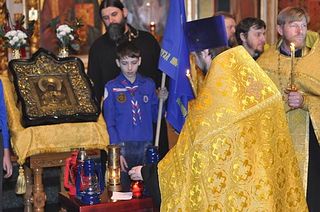 В России Вифлеемский огонь уже более 15 лет передается из рук в руки, из храма в храм, из скаутской штаб-квартиры к домашним лампадкам верующих. В этом году частица Огня для нашей страны была получена 21 декабря в г. Минске из рук белорусских скаутов. На следующий день на Крутицком Патриаршем подворье в Москве перед святыней был отслужен молебен, после которого Огонь начал свой путь по России.