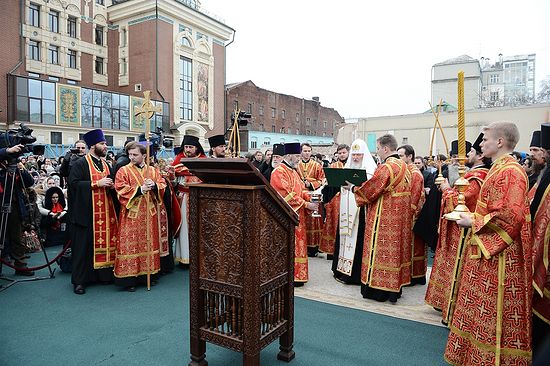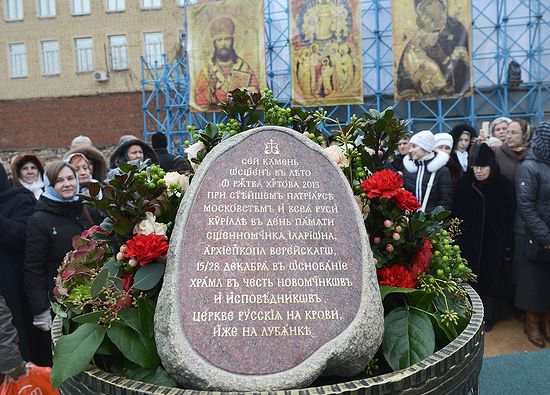 Святейший Патриарх Кирилл освятил закладной камень в основание храма Новомучеников и исповедников Российских на крови, что на Лубянке.