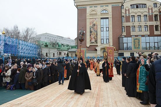 28 декабря 2013 года, по окончании Божественной литургии в соборе Сретения Владимирской иконы Божией Матери в Сретенском ставропигиальном монастыре г. Москвы, Святейший Патриарх Московский и всея Руси Кирилл возглавил крестный ход с иконой Новомучеников и исповедников Российских к месту закладки нового храма на территории обители, сообщает Патриархия.ru.