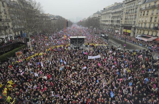 В Париже продолжаются массовые манифестации против однополых браков: 21 апреля на улицы выходят 270 тыс. человек. Полиция оценивает происходящее скромнее и называет цифру в 45 тыс.