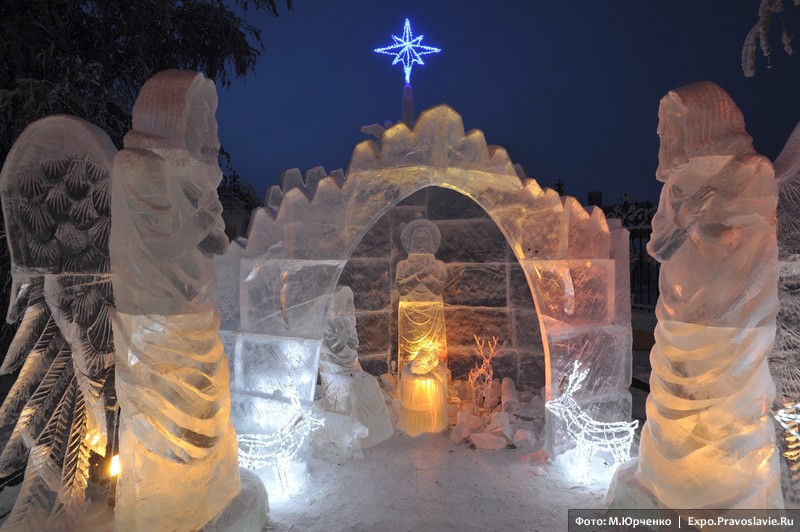 На Божић, по обичају, братија је направила вертеп. Право код храма усред снијега – пећина од леда, освијетљена фењерима, а у њој дрвене јасле и у јаслама право сијено, поред крпени коњ и магарац, и најважније – Пресвета Богородица са Младенцем Христом у пеленама.