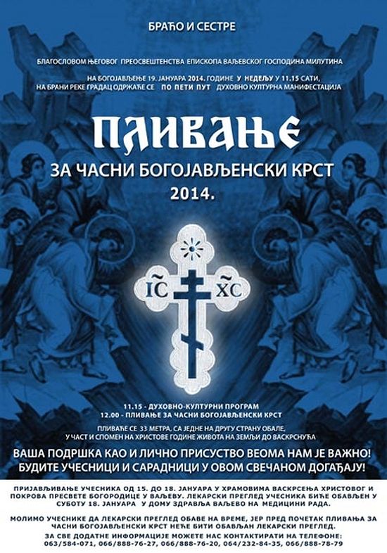 Пријављивање учесника од 15 до 18. јануара у храмовима Васкрсења Христовог и Покрова Пресвете Богородице у Ваљеву.