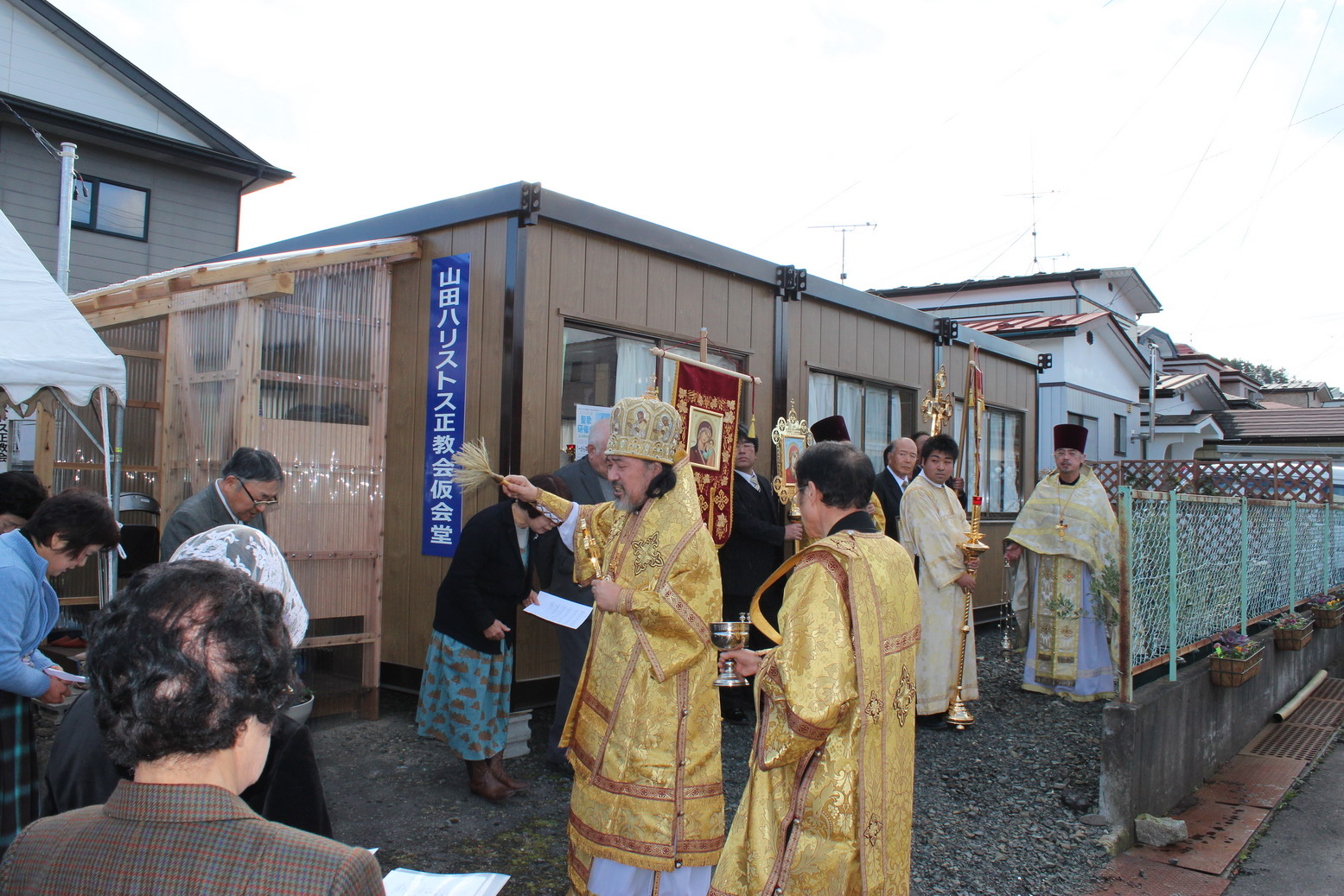 2 октября 2013 года архиепископ Сендайский привез церковную утварь для возведенного в Ямада временного храма. Участок земли был подарен одним из верующих, живущих поблизости от разрушенной церкви. Возведение нового храма стало большим утешением и радостью для православных в Ямада. До постройки храма богослужение совершалось раз в месяц в домах прихожан. 24 ноября архиепископ Серафим освятил временный храм, и об этом торжественном богослужении, в котором принимали участие более 40 человек, сообщалось в газете префектуры Иватэ «Иватэ кайхо».