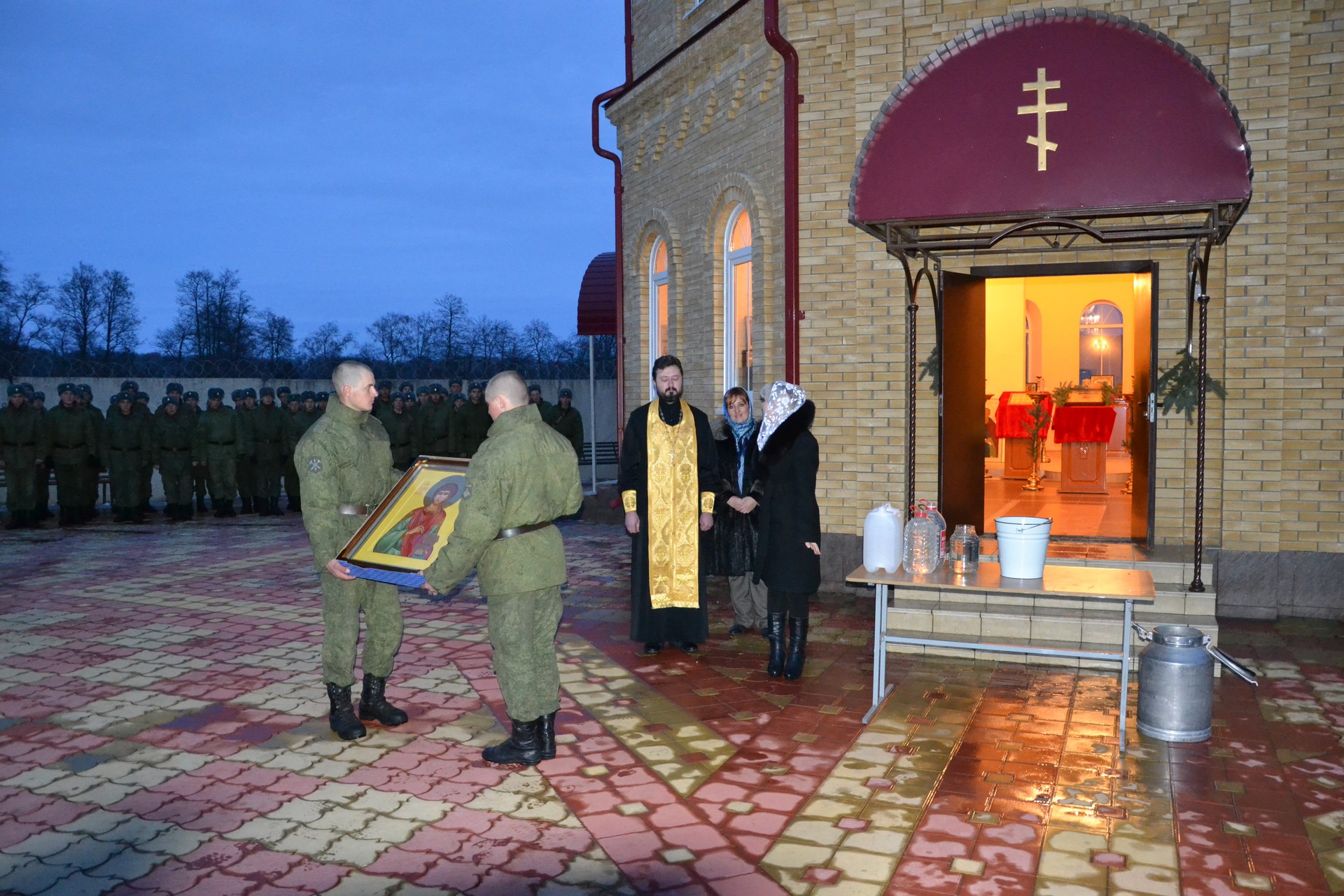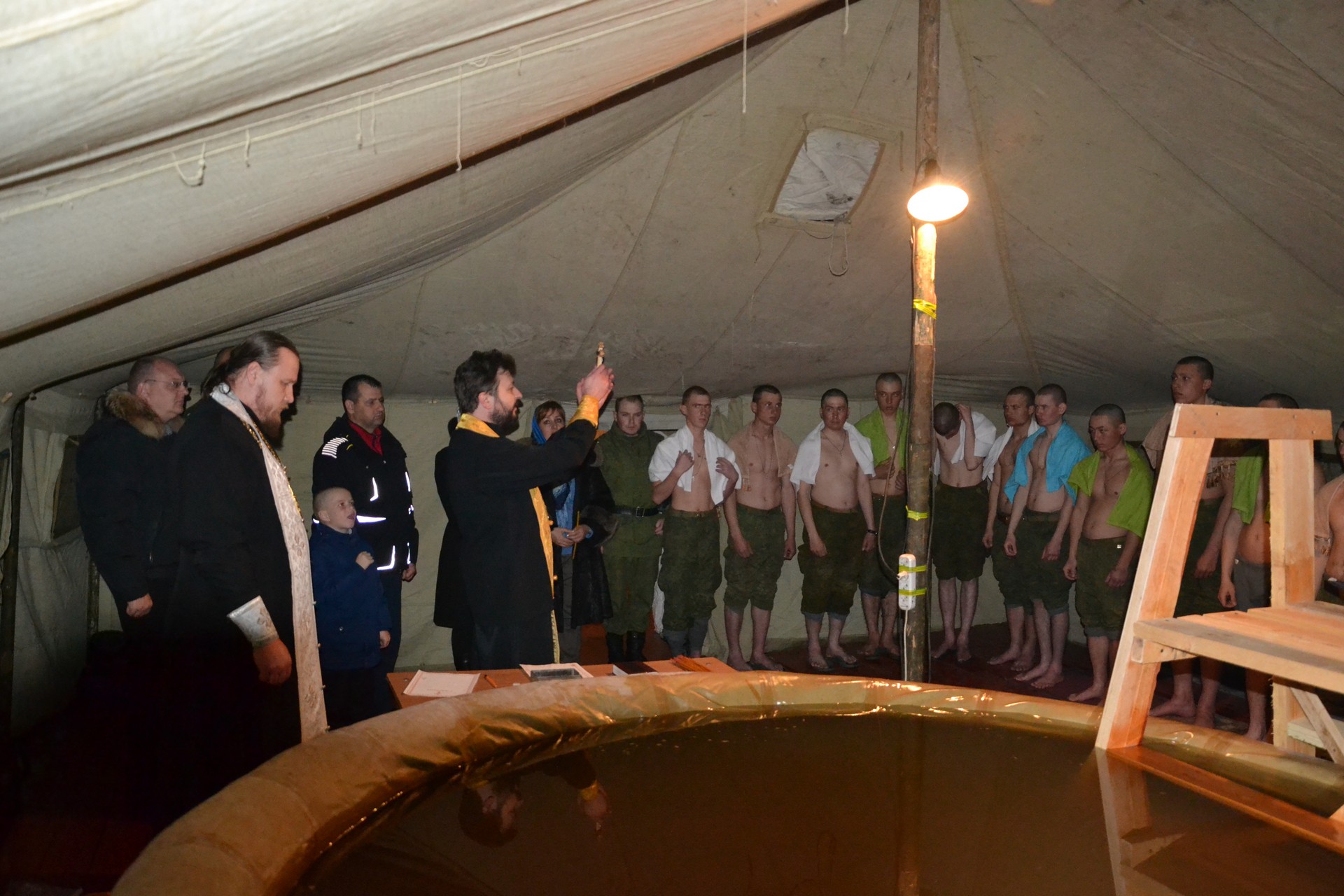 Већ трећу годину заредом се обавља крштење на Крстовдан. Ове године су православни хришћани постала двадесет два војника. Кумови су, као и сваке године, - командир бригаде генерал-мајор Михаил Зуско, заменик командира за рад с личним саставом Денис Сергејев и др.