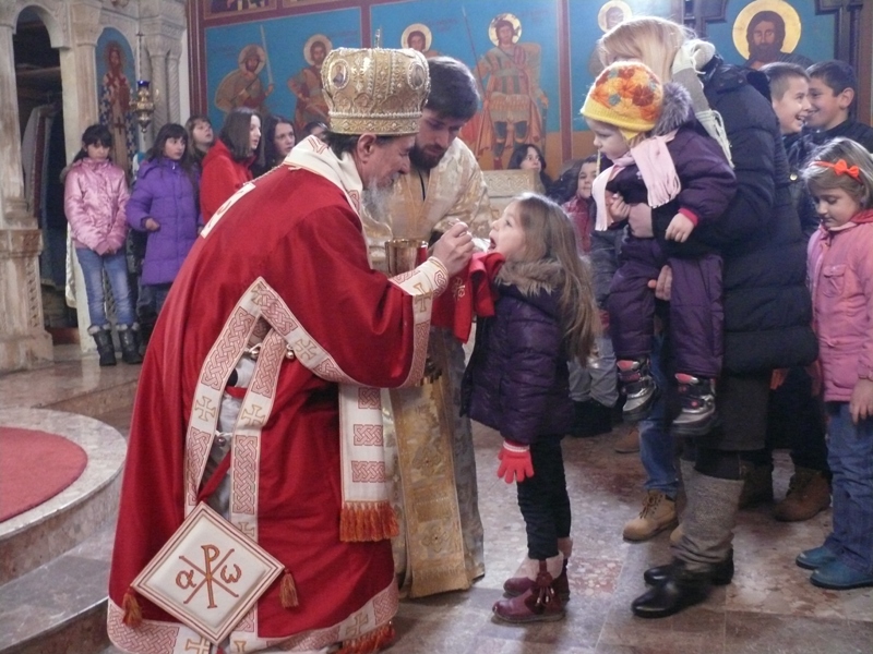 Његово Преосвештенство Епископ бихаћко-петровачки г. Атанасије на Савиндан је служио свету архијерејску Литургију у Катедралном храму Светих апостола Петра и Павла у Босанском Петровцу. И поред веома хладног јутра дјечица са родитељима су испунили храм. За пјевницом су лијепо и умилно пјевали ученици Основне школе са својим вјероучитељем оцем Бојаном. На крају свете Литургије епископ Атанасије је преломио славски колач и благословио славско жито. Заиста је било лијепо видјети окупљену дјечицу око свог Епископа и свештеника како заједно окрећу и ломе славски хљеб.