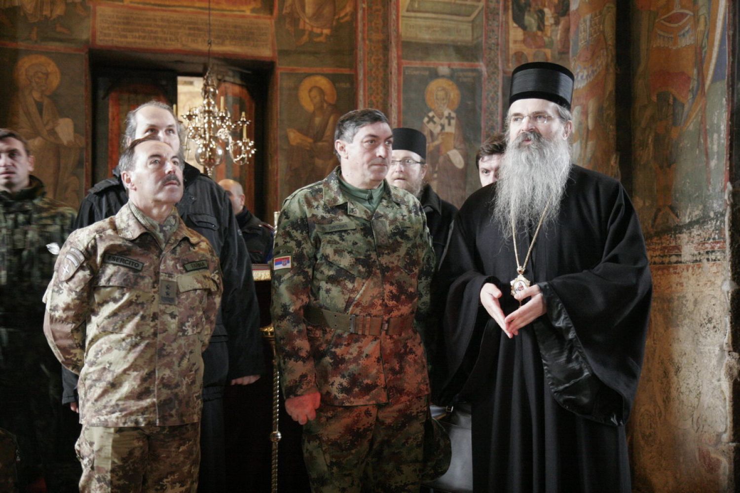 Начелник Генералштаба Војске Србије генерал Љубиша Диковић у пратњи команданта КФОР-а италијанског генерала Салватора Фарине посетио је 29. јауара 2014. године манастир Високи Дечани.