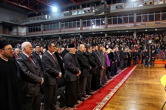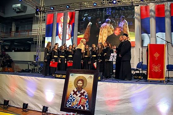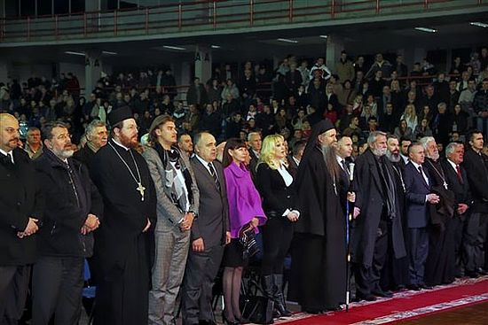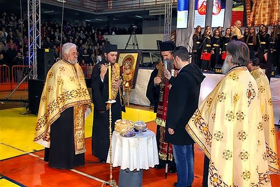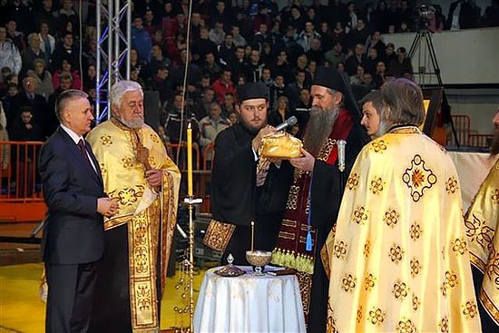 Више хиљада Бјелопољаца, који су се окупили у спортској дворани Никољац, благословио је Његово Преосвештенство Епископ будимљанско-никшићки Господин Јоаникије.