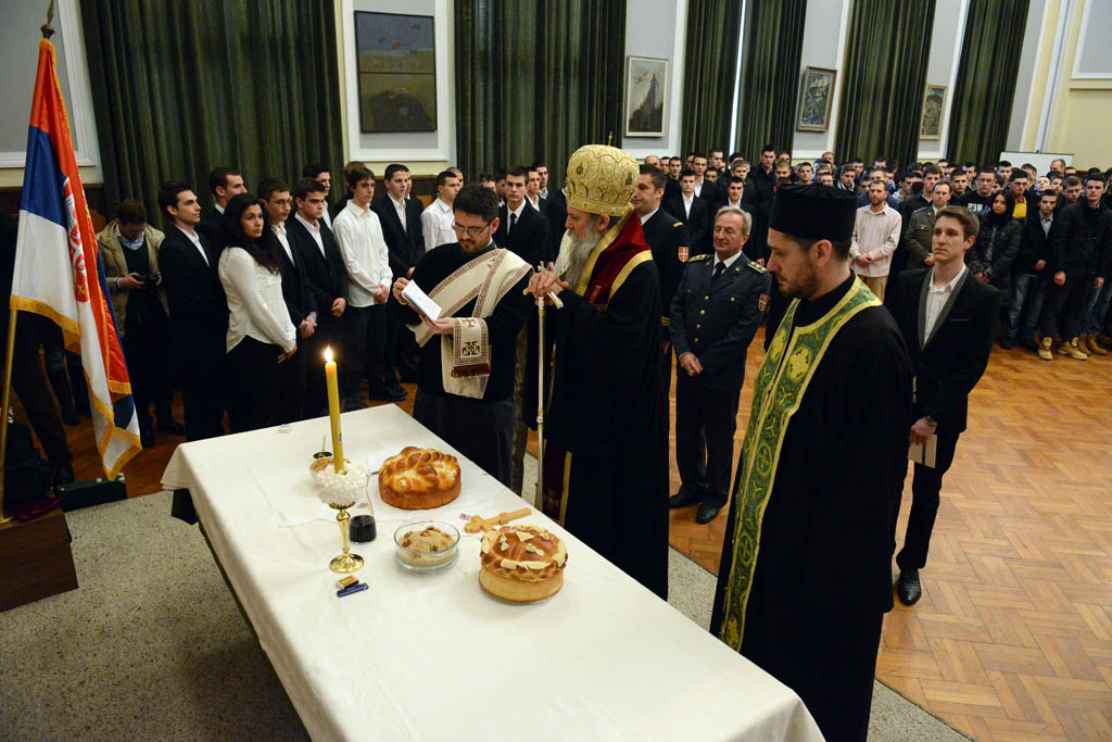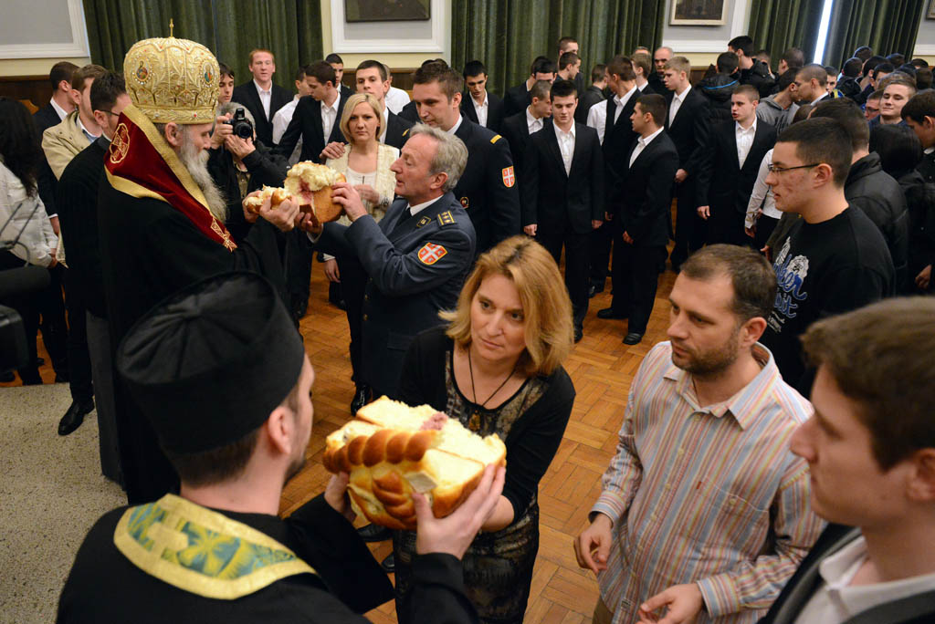 Ђаци Војне гимназије, после обреда сечења славског колача, извели су приредбу у сарадњи са ученицима Спортске гимназије.