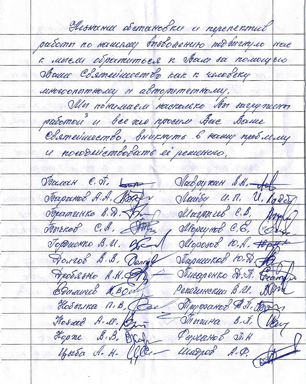Мы понимаем, насколько Вы загружены работой, и все же просим Вас, Ваше Святейшество, вникнуть в нашу проблему и посодействовать ее решению.