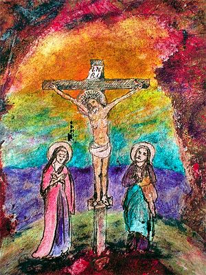 Титульный лист альбома с акварелями игумена Ипполита. Под изображением Голгофы была надпись: «Пишу не для славы, а для забавы. Игумен Ипполит»