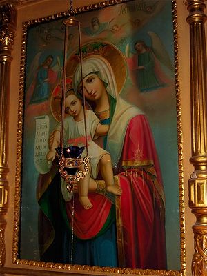 Икона «Достойно есть», привезенная архимандритом Аристоклием (Амвросиевым) со святой Афонской Горы и хранившаяся на ул. Кировской, в д. 76 (бывшей ул. Дмитровской), у монахини Евфросинии (Барановой). Ныне находится у правой стены (между хором и иконостасом) в Трапезной церкви Троице-Сергиевой Лавры.