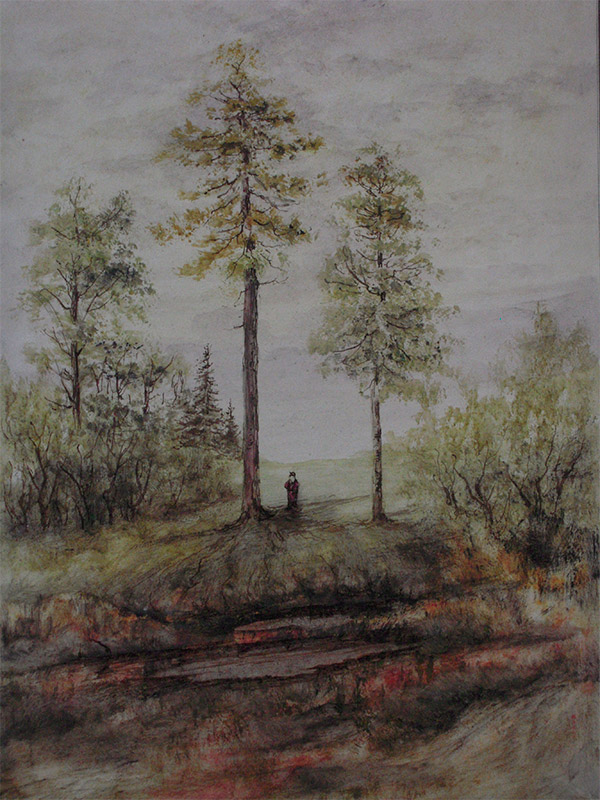 В эти тяжелые годы дом-подворье стал часто навещать духовник монахини Евфросинии – насельник лаврского Черниговского скита игумен Ипполит. Он любил заниматься живописью, работал в стиле академического реализма и, по-видимому, был связан с лаврской художественно-иконописной мастерской. Он даже устроил у монахинь своего рода мастерскую: поставил мольберт и писал различные картины на духовные темы. Кроме того, он перенес в дом около 10 живописных полотен разных мастеров, хранившихся до этого в его скиту. Часто навещая монахинь, отец Ипполит постепенно создал целый альбом пейзажей, выполненных в сложной технике акварели, гуаши с доработкой пером и тушью. На титульном листе этого альбома пером было сделано изображение Голгофы, а под ним славянской вязью – надпись: «Пишу не для славы, а для забавы. Игумен Ипполит».