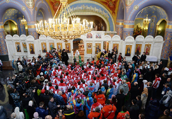 - Спортисти, који напрежући сву своју снагу желе да победе противника, морају бити свесни да им је поред врхунске техничке обуке и опреме, неопходно врхунско унутрашње стање ума, што у великој мери одређује способност личности да победи. Овај феномен је познат не само у спорту: победници нису били увек боље наоружани и боље припремљени, њих је до победе пратила победа духа. Када дођете на старт, сетите се мојих речи.Концентришите се, пробудите унутрашњу силу духа - то ће гарантовати ваш успех. А сада помолимо за добробит наших народа и наших земаља. Помолимо се за добробит спортиста који ће овде на Олимпијади представљати наше земље и народе.