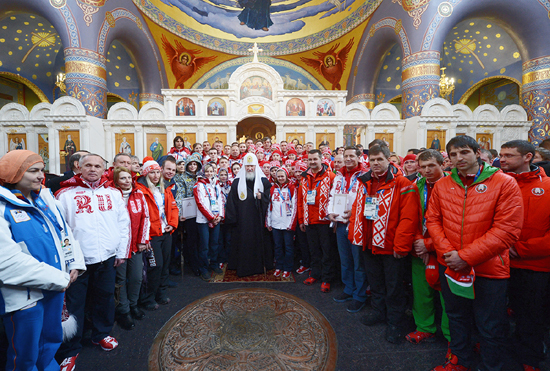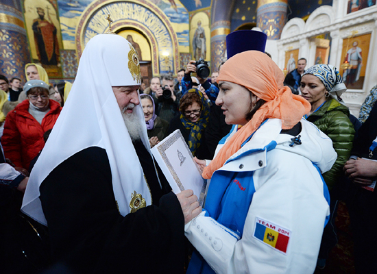 Током службе Патријарх се молио заједно са представницима олимпијских тимова Белорусије, Молдавије, Русије и Украјине, којима се обратио: - Желео сам да вас све упознам, драги моји, да се упознам са спортистима из Русије, Белорусије, Украјине и Молдавије, са спортистима који представљају земље у којима се простире пастирска брига наше Цркве - једне Цркве Свете Русије. Помолио сам се за ваш успех, за вашу добробит, да вам Господ у тешким треницима током такмичења подари силу духа, рекао је Његова Светост и додао: