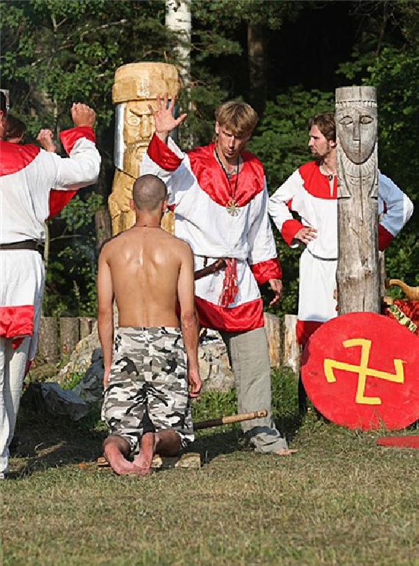 Две другие идентичности – «фэнтезийный языческий рус» и «русский», к сожалению, вступают в конфликт. Во-первых, человек отказывается признавать игру игрой – он настаивает, что он и в самом деле «языческий рус»; во-вторых, всё, что определяет культуру и идентичность реально существующего русского народа, для него является чужим и враждебным. Святыни русского народа для него не только не святыни, но знаки чужого и враждебного присутствия, оккупации злыми пришельцами «исконной» «языческой Руси».