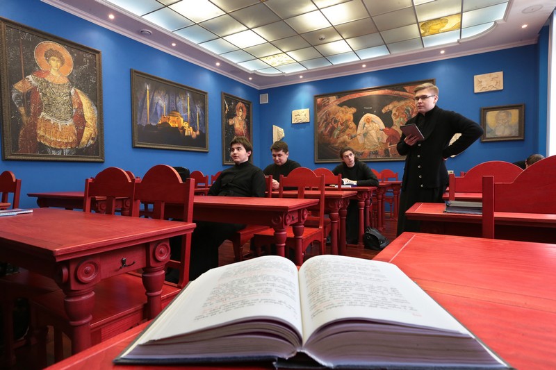 Как сказала преподаватель новой и новейшей истории Нина Николаевна Коршунова, с самого начала в его реконструкцию было вложено много тепла и заботы. Заботы о том, чтобы всем здесь было хорошо: и студентам, и преподавателям. «Сюда вложена душа ректора – архимандрита Тихона (Шевкунова), проректора – иеромонаха Иоанна (Лудищева), выпускника первого монашеского набора семинарии, – добавила она и продолжила. – Я также преподаю в одном из ведущих инженерно-технических вузов страны – Московском авиационном институте, но возможность во время лекции воспользоваться аудио- и видеоаппаратурой там, к сожалению, бывает крайне редко. Надо предварительно договариваться с руководством факультета, при этом до последнего не зная, то ли будет, то ли не будет аудитория, где можно показать видеоматериалы, а здесь такой вопрос не стоит. Все в аудиториях есть. Преподаватель может заранее написать сценарий лекции и распределить свое время. Это замечательно, потому что дает возможность познакомить семинаристов с тем отобранным материалом, благодаря которому рождается живое представление о событиях той или иной эпохи».