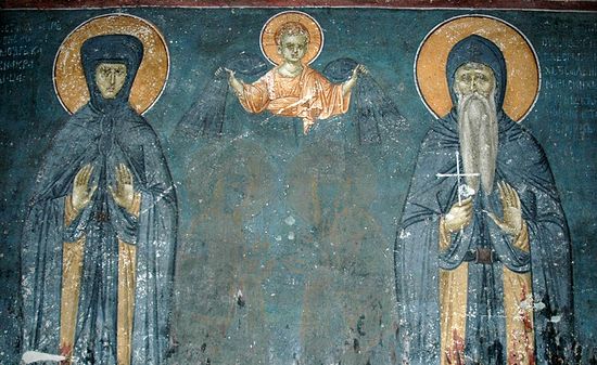 „Свети Христови претстојатељи и арханђели, пророци и апостоли, мученици и јерарси, преподобни оци и пустињаци, црнорисци и преподобне деве, излијте своје молитве пред Владиком свих, Господом нашим Исусом Христом, да ме не осуди на дан Страшнога суда и грознога испитивања, него да ми буде милостив, тих и снисходљив, и да ми ради молитава Пречисте Матере Своје и ваших, Свети, да да ја, пребродивши буру живота, уђем у тихо и истинито и неузбуркано пристаниште и видим незалазну Светлост моју – Господа и Спаса и Бога мог, цара Исуса Христа, који је међу Светима хвала Израиљева. Јер пророк рече: у Тебе се уздаше оци наши, и не постидеше се; у Тебе се уздаше, и спасоше се (Псал. 21, 5-6). Зато, о Господе, не остави ни мене беднога који се уздам у милост Твоју; не одбаци, Спаситељу, и милуј грешно створење Твоје, да, одбацивши красоте овога света, пође за Тобом, хвалећи и благодарећи свето и незлобиво име Твоје, Оца и Сина и Светога Духа, и сада и свагда и кроза све векове“.