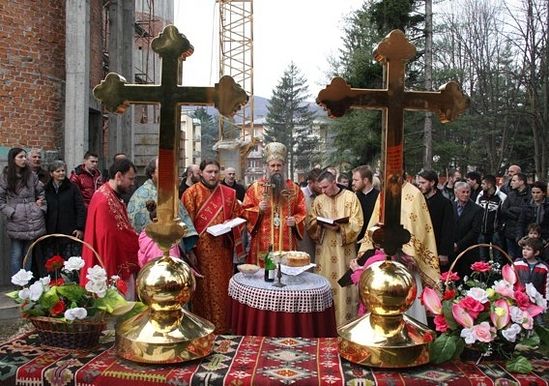 Његово Преосвештенство Епископ будимљанско-никшићки Г. Јоаникије служио је на празник Светог свештеномученика Харалампија, на Месопусну недјељу, 23. фебруара 2014, Свету Архијерејску Литургију у храму Преображења Господњег у Беранама. Након Литургије освештани су крстови, прилог г.дина Здравка Станковића, за звонике на Саборном храму Светог Симеона Мироточивог, који се подиже у Беранама.