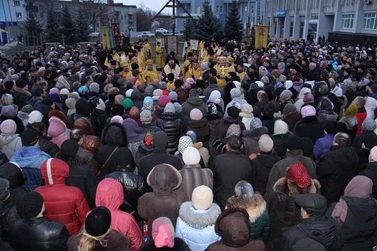 На вопрос, намерены ли собравшиеся пребывать в канонической Церкви, а также, намерены ли они защищать свои храмы, верующие ответили многотысячным утвердительным возгласом.