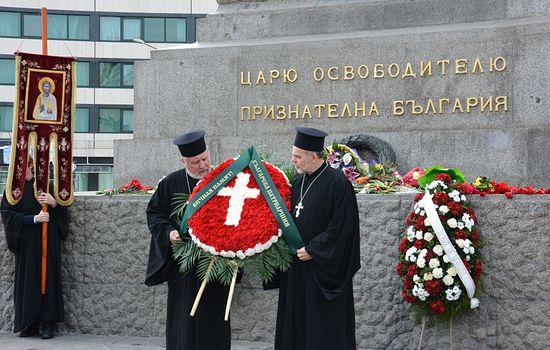 Даље је литија, на челу са Његовом Светошћу Патријархом Неофитом, кренула од саборног храма ка споменику Цару Ослободиоцу – руском императору Александру II. Код споменика је отпевана „Вјечнаја памјат“ и положен венац у име Бугарске Православне Цркве.