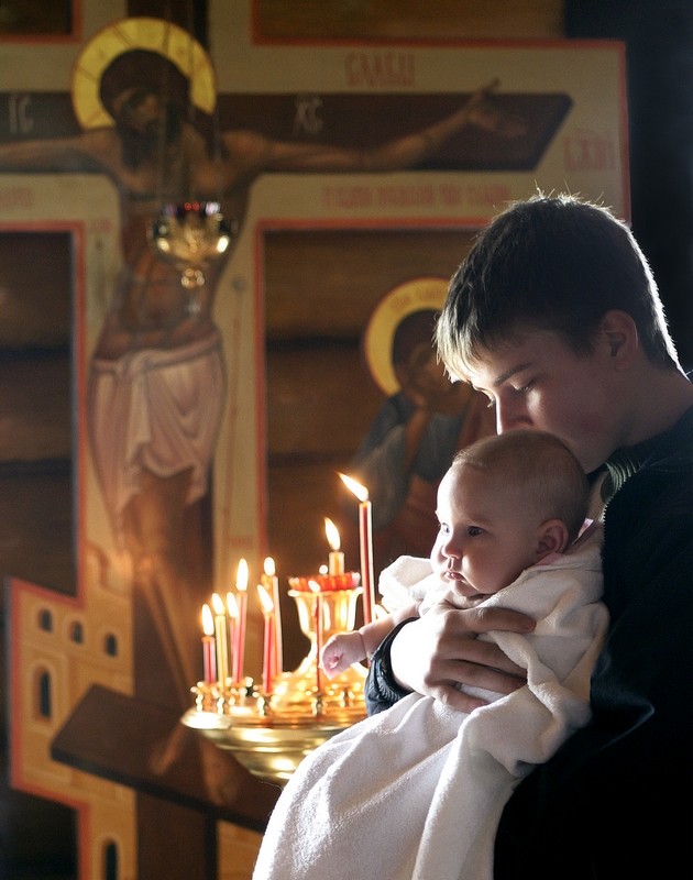 When a visitor steps foot into an Orthodox Church, the first face she will probably see is Jesus. He will be placed on a small stand in the temple (i.e. the "sanctuary"), and as worshipers enter, they will cross themselves, kiss his hand and cross themselves again. I am talking about icons -- religious "pictures" -- which will be scattered throughout the church. The faces of the holy ones seem to come to life behind the flickering light of vigil lamps, hanging from gold or brass chains. Parents will raise their small child up to kiss the feet of some saint. Other worshipers will lay flowers before the icon of the Mother of God and offer special prayers of supplication or thanksgiving.