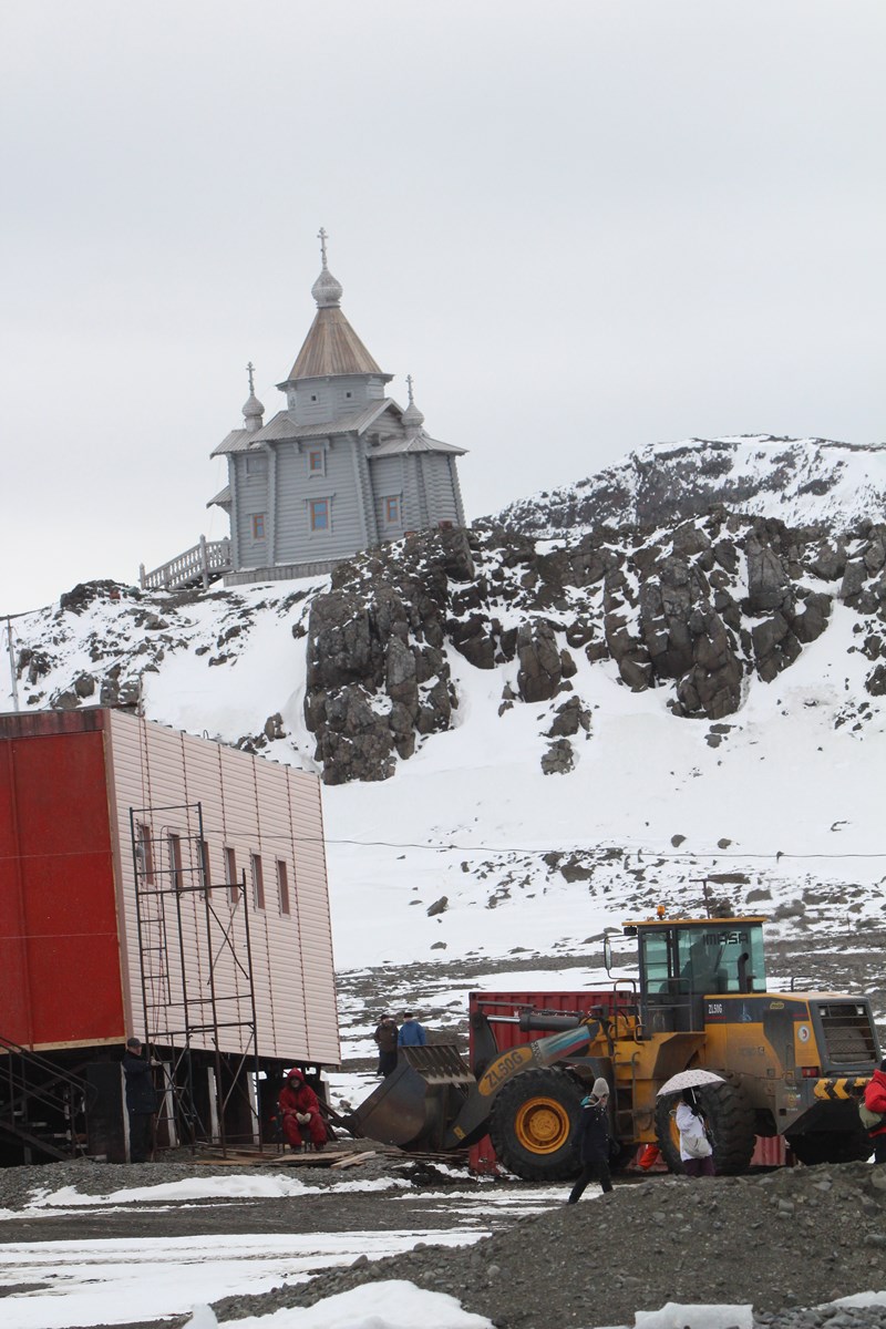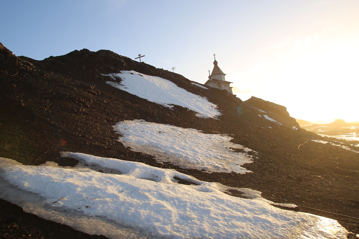 Возвели церковь на прибрежной скале возле научной станции «Беллинсгаузен», которая располагается на острове Ватерлоо (на Западе его именуют Кинг Джордж). Православная свеча молитвы видна издалека. Остров – самый интернациональный в Антарктиде. Кроме российской, там еще действуют научно-исследовательские станции Чили, Аргентины, Китая, Уругвая, Южной Кореи, Перу, Бразилии и Польши. У чилийцев есть часовня. Но это – два сваренных металлических контейнера. А наш храм – из бревен, всё по-настоящему, кресты сияют, звонят колокола, регулярно совершаются службы.