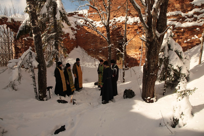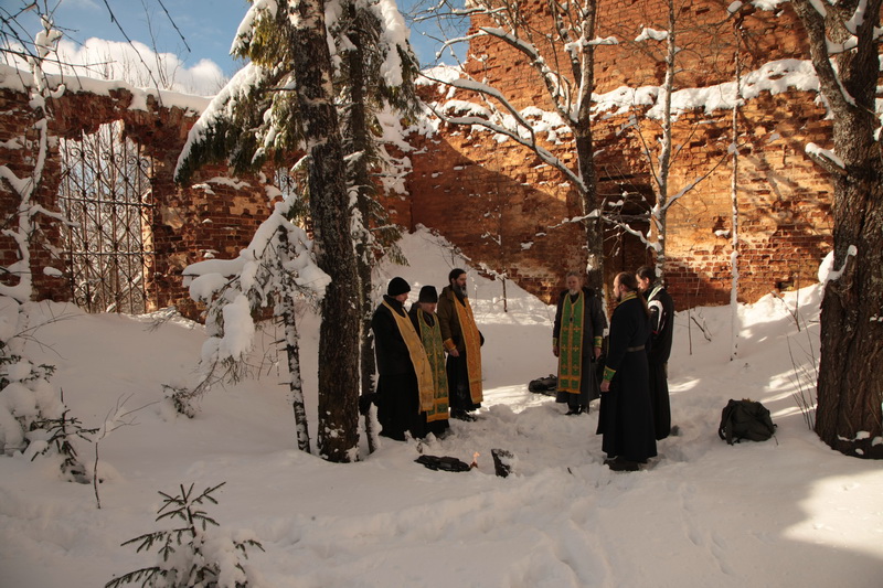 На холме, где находятся руины Спасо-Преображен ского храма, Владыка Максимилиан совершил молебен. Архиепископу сослужили клирики храмов епархии, сопровождавшие владыку, сообщает пресс-служба епархии.