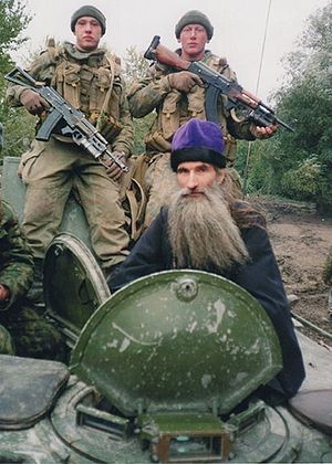 Мне приходилось возить гуманитарную помощь в Чеченскую Республику. Тогда военных мало кто защищал, и их проблемами практически вообще не интересовались. Я с прихожанами начал собирать и отсылать в Чечню все, что мог собрать: носки, одежду, писчую бумагу (около тонны — для писем родным), письменные принадлежности, продукты питания. К нашему начинанию присоединялись верующие и из других регионов. Получилось, что наш храм снова стал воинским.