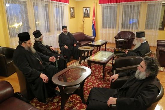 Поводом овогодишње прославе Преподобног Јустина Новог Ћелијског у манастиру Ћелије, када ће Епархија ваљевска прославити два изузетно важна јубилеја за Српску Православну Цркву и православни свет уопште - 120 година од рођења и 35 година од престављења Господу овог угодника Божијег, и када ће његове Свете мошти бити извађене из његовог Светог гроба и бити положене у манастирски храм у Ћелијама, Његово Високопреосвештенство Архиепископ цетињски и Митрополит црногорско-приморски Г. Амфилохије и Његово Преосвештенство умировљени Епископ захумско-херцеговачки Г. Атанасије, на дан Преп. Симеона Новог Богослова и и Светог Григорија Двојеслова, 25. марта 2014. године, посетили су Његово Преосвештенство Епископа ваљевског Г. Милутина у Епископском двору у Ваљеву.