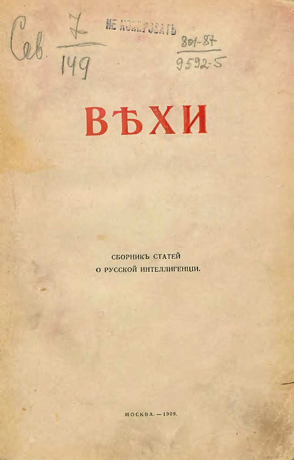 Вехи. Сборник статей о русской интеллигенции. М., 1909. Вехи. Сборник статей о русской интеллигенции. М., 1909.