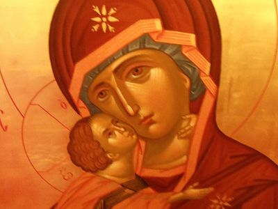 This feast was established in deep antiquity. We know of its celebration from as early as the third century (see the homily by St. Gregory the Wonderworker on that day). In his conversations, St. John Chrysostom and Blessed Augustine mentioned this feast as being an ancient and customary celebration. During the course of the fifth to eighth centuries, after the appearance of heresies that degraded the person of the Mother of God, the feast was especially rendered honor in the Church. In the eighth century, St. John Damascene and St. Theophan, Metropolitan of Nicea, composed the festal canon that is now sung in the Church.