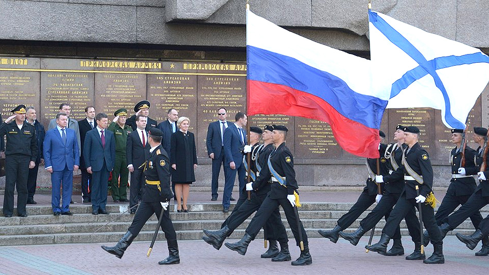 Он је стигао у пратњи чланова Владе и руководства Севастопоља. Након полагања цвећа минутом ћутања присутни су одали пошту погинулима. Руску химну је током церемоније извео оркестар Црноморске флоте РФ.