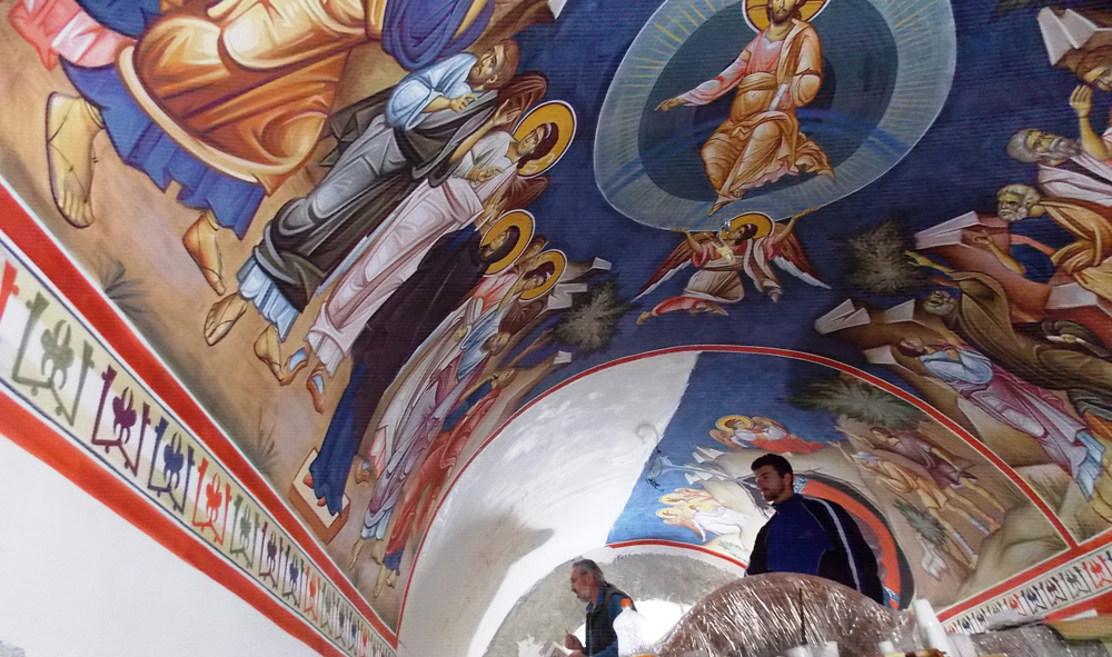 Игуман Стефан не крије своју радост ових дана, гледајући како се у манастирској цркви појављују прве фреске.