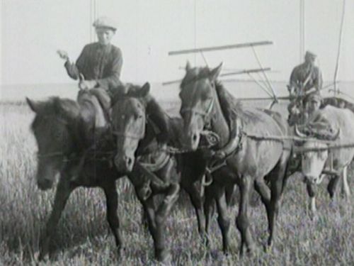 На киноленте 1910 г. оператора Николая Миневрина, фрагменты которой проходят в фильме «Крестьянская история», мы видим, как хлеб в станицах убирают небольшими машинами, как работает трактор французского производства, который покупался, как правило, на четыре семьи. Машины также использовали на обмолоте и помоле.