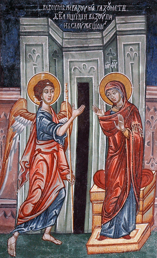 Каква је то Блага Вест сишла на земљу? Шта се то збило у нашем горком животу људском. Зар је могућа Блага вест у свету у коме постоји смрт? Зар је могућа права радост у свету где се све претвара у грч страха, пред страшном немани која се зове смрт? Данас и збива се заиста највећа Благовест. Шта се дешава? Данас Свети Архистратиг Гаврил долази Светој Дјеви, и објављује ту Благу Вест: да ће родити Сина, да ће му наденути име Исус-Спаситељ, и да Његовом Царству неће бити краја[1]. И сам Свети Архистрати као да се загрцнуо од ове велике и превелике тајне. Како се то несместиви Господ и Бог рађа од девојке? Како се Он смести у телу Пресвете Дјеве. Тајна је то велика, светајна.