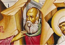 The icon of the Saturday of Lazarus shows Christ calling His friend to come out of the tomb (1). Lazarus is coming forth from the tomb (2), still bound in the strips of burial cloth. His sisters, Mary and Martha are bowing before Christ, expressing both their sorrow in the death of their brother, but also their faith in Christ as the Messiah and Son of God. Next to them is someone who has followed the request of our Lord and removed the stone from the door of the tomb (3).