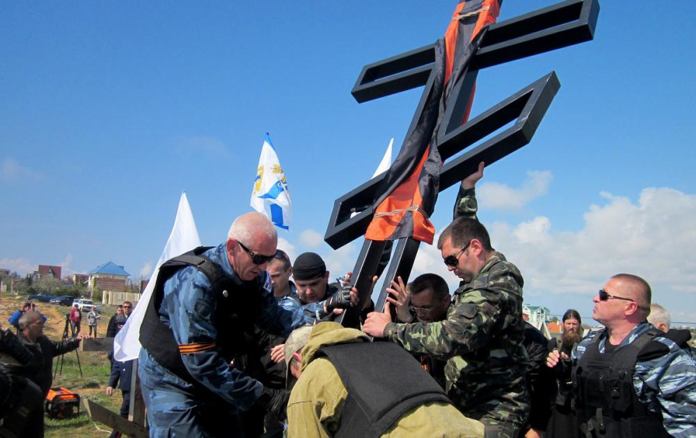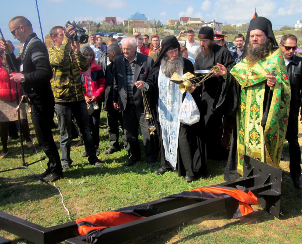 „Пре кримског референдума извршен је чин вандализма: крст су запалили током ноћи и бацили га на земљу – испричао је један од припадника одреда самоодбране Севастопоља, Алексеј Дељвиг. – Л бвокални житељи су га привезали за ослонац, међутим два дана након објављивања резултата референдума крст је спаљен“.