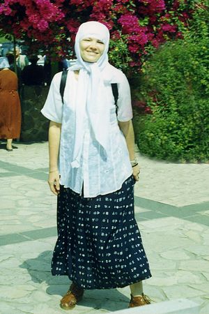 Утром я облачилась в «запасные» наряды, подошла к зеркалу и замерла, потому что увидела портрет паломницы, который описал священник перед моим отъездом, и даже улыбнулась: ну батюшка и напророчил! После операции голову до самых глаз затянули бинтами, поэтому мне пришлось повязать платок под брови, кроме того на мне были неброская белая блузка, простая темная юбка. Всё в точности совпадало!