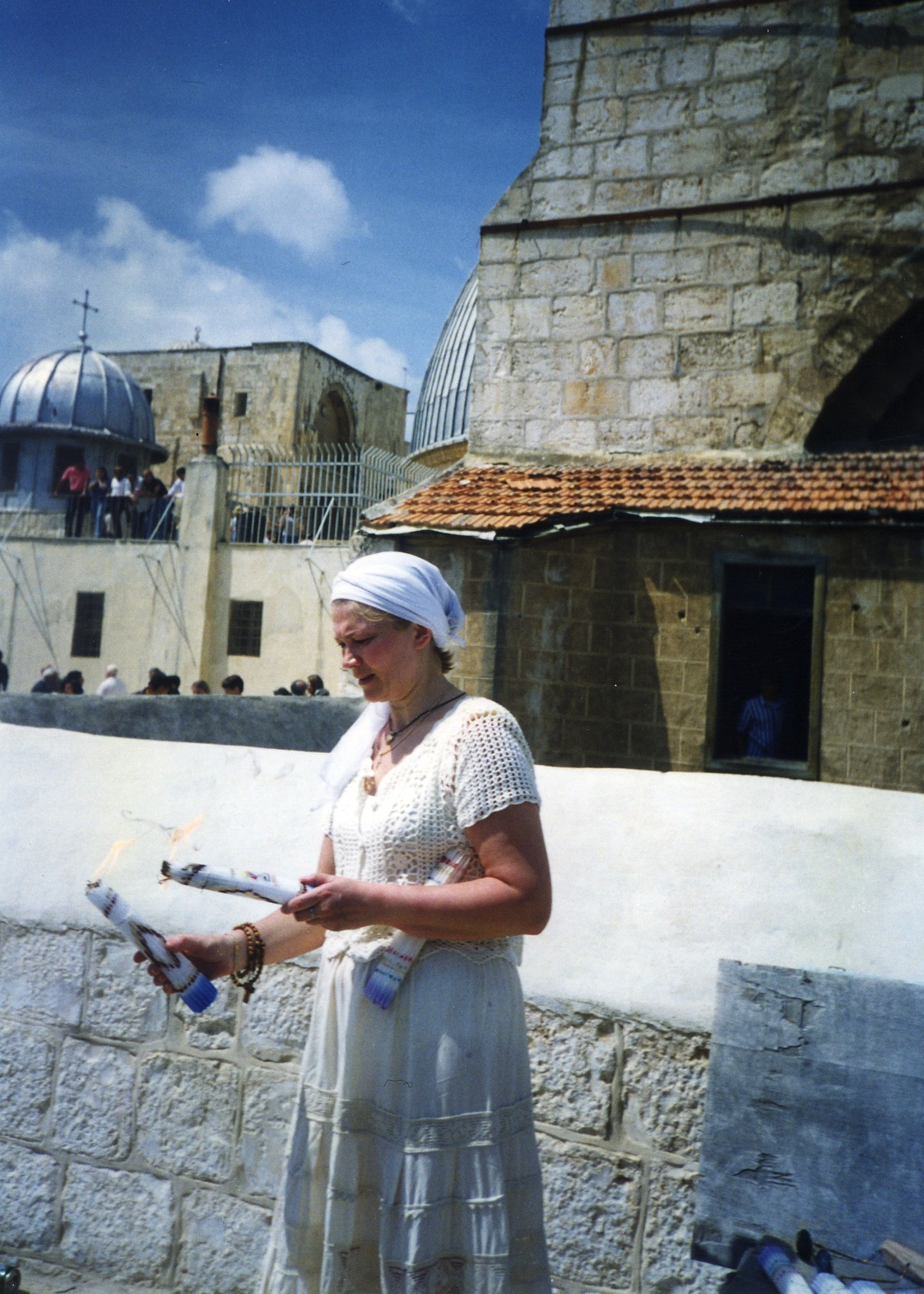 Выйдя из Кувуклии, просветленная и утешенная, я поблагодарила отца Пантелеимона. Он, понимая мои чувства, с улыбкой благословил. Тут я вспомнила о связке восковых свечей, последней из врученных мне батюшкой перед отъездом в паломничество. Достала ее из рюкзака и протянула отцу Пантелеимону. Он приложил связку к лицу, вдохнув дивный аромат настоящего воска, затем прижал к сердцу и торжественно понес внутрь Кувуклии. Мне стало так радостно, что наши поярковские свечи, привезенные из-за тысячи верст, будут гореть на Гробе Спасителя как приношение от всех, кто в нашей Русской земле остался верным Господу.