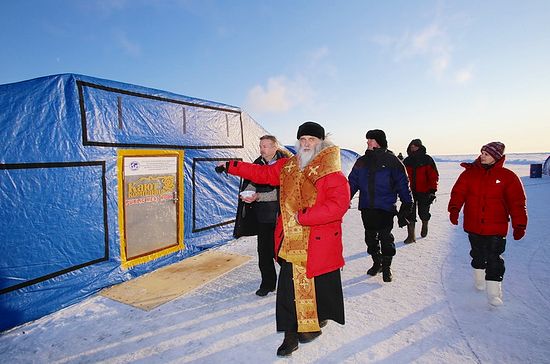 «Местом молитв русских полярников и воинов стала походная церковь во имя святителя Николая Чудотворца – покровителя русских первопроходцев, мореплавателей, миссионеров», – рассказал епископ Иаков.