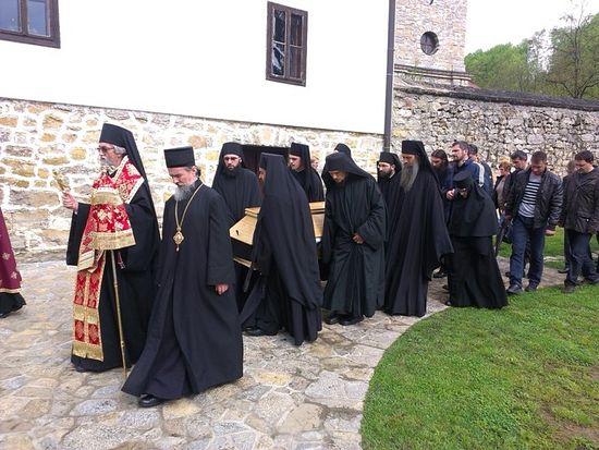 Преосвећена господа Епископи бањалучки Јефрем и бихаћко-петровачки Атанасије служили су 27. априла 2014. године опело блаженоупокојеној игуманији гомионичкој Јефимији