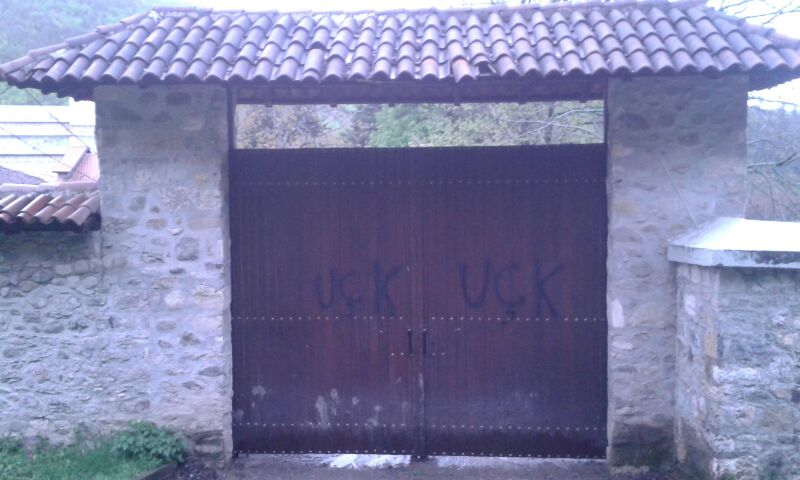 Утром 24 апреля насельники расположенного в Метохии монастыря Високи Дечани обнаружили, что на монастырских воротах написано краской «UCK» – сокращенное название террористической организации «Армия освобождения Косова». Эта провокация произошла в непосредственной близости от пункта охраны международных сил КФОР, сообщает портал «Косовский дневник».